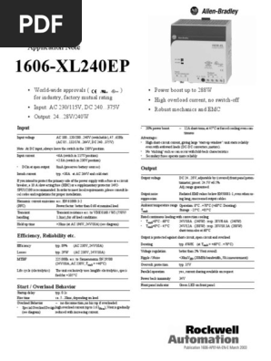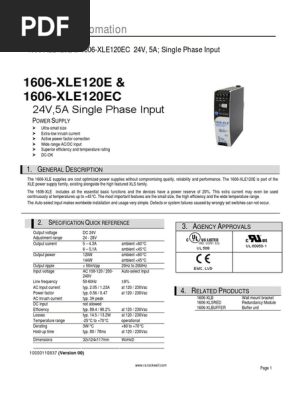 180264v ac 2428 120 5 117 1606-xle120ee 100120200240v ac 2428 240 10 434 223 1606-xle240e 90132v ac 2428 240 10 373 1606-xle240en 180264v ac 2428 240 10 220 1606-xle240ee 100120200240v ac 2428 240 10 434 200 1606-xle240ep 100120200240v ac 4852 240 5 434 223 1606-xle240f. The most outstanding features of this 1606-XLS DIN-rail power supply are the high efficiency and the small size which are achieved by a synchronous rectification and further novel design details. Customers are encouraged to migrate to the Bulletin 1606-XLEXLS Switched Mode Power Supplies.