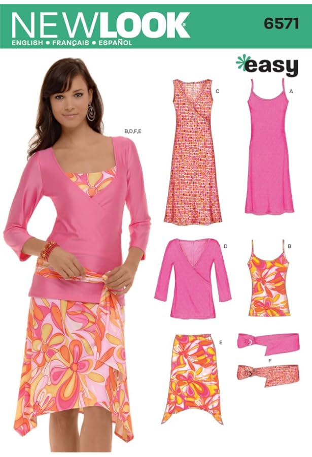 N6434 New Look Sewing Pattern Misses Tops With Fabric Variations New Look